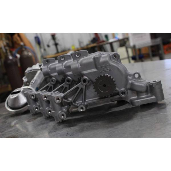 This pump has some advantages over the S2K pumps that are commonly used. The pickup is further forward, and lower in the pan, and it frees up an additional 1-2hp. This is the chosen pump for all of our racing engines for many of these reasons.