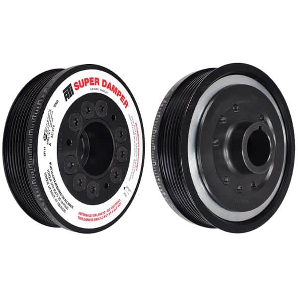 ATI Performance Products has developed Super Dampers for the Honda K-series engine for ?02 Honda Civic Si & Acura RSX for both street and racing applications. The street version (Part # 918477) comes with 360? laser-etched timing marks and features a single serpentine belt drive on the outer shell to utilize the factory serpentine belt set-up. Race dampers allow for the mounting of a dry sump oiling drive gear to the front of the pulley. All K-series Super Dampers exceed SFI 18.1 Safety Certification and are approved for NHRA & IHRA competition.
