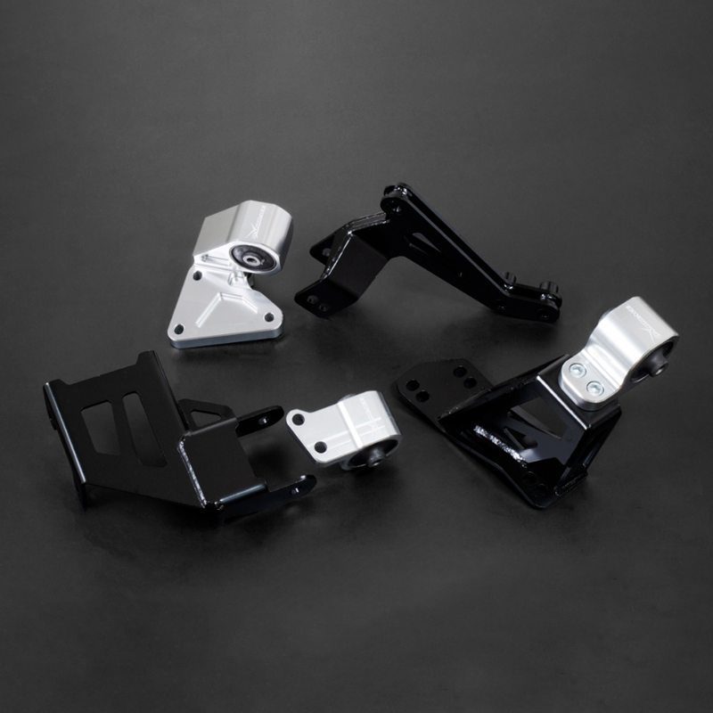 The engine mount kit is required when performing a K-series engine swap into Civic EG/Integra DC2. It features 5mm thick steel alloy construction for the brackets, offering superior strength and durability to withstand higher horsepower and torque output. With the reinforced soild ruubber bushings, this kit also capably eliminate unwanted vibrations and flex of the mountings under hard acceleration, braking and cornering, ensuring the maximum transfer of power to the wheels.