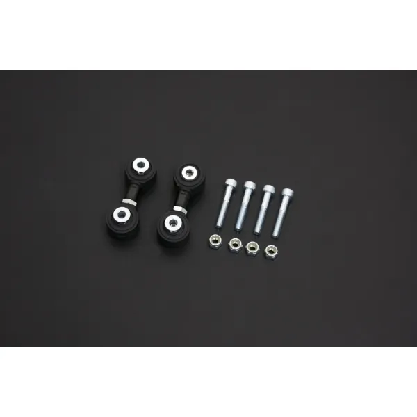 HARDRACE adjustable stabilizer links allow you to fine tune the position your sway bar for optimum handling. The adj. stabilizer link manufactured from high tensile steel with tight ball joints and rubber boots for superior strength and rigidity to extend its life. An absolute must for any lowered vehicle.