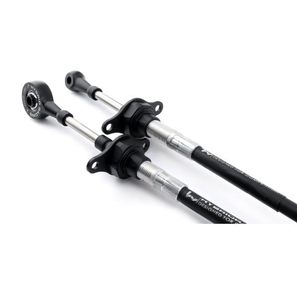 Hybrid Racing shifter cables are a performance upgrade replacement for stock OEM cables. The solid rod ends, permanently lubricated core, spherical bearings, & aluminum end links give the Hybrid Racing cables a firmer, tighter feel over OEM cables resulting in fewer missed shifts and a more connected feel to the chassis. Heat resistant up to 225*F with a max bend radius of 5″ (for optimum life)