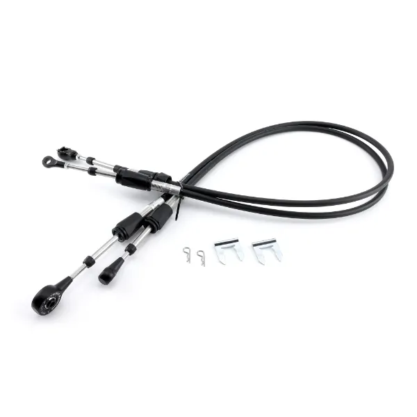 The kit comes with two shifter cables; each shifter cable set includes two cotter pins, and clips for the shifter end. We also include new hardware for the shifter cable mounting plates that attach to the transmission bracket. You will reuse your OEM center bracket and cable seal.