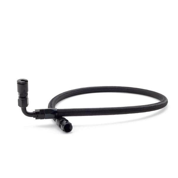 This kit replaces the OEM rubber lines with a -6AN braided line. It also replaces the plastic connectors with durable aluminum connections that will stand the test of time. The line connects to the OEM hard line at the firewall using a specially designed quick disconnect fitting. You can attach the line to the fuel rail using one of the AN fittings supplied with the line. Once installed, the new line will route between your number 2 and 3 runners and neatly hug the transmission as it snakes its way to the hard line at the firewall, giving your engine bay a cleaner, less cluttered appearance.