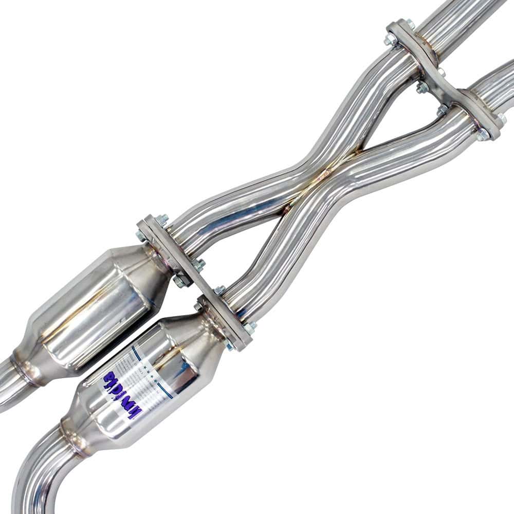 Available only for vehicles with a twin-exit exhaust, the Invidia Gemini is a true split exhaust system featuring newly designed twin cannon style mufflers arranged horizontally behind the rear bumper. The mid-section of the exhaust includes an “X-Pipe” to improve the acoustics and performance. The X-pipe will deliver a more high-pitched exhaust note while creating a venturi effect, which helps pull the exhaust gases out of the cylinder faster. The Invidia Gemini will offer an exhaust note that sounds good at any point in the rev range but truly comes alive at the top of each gear.