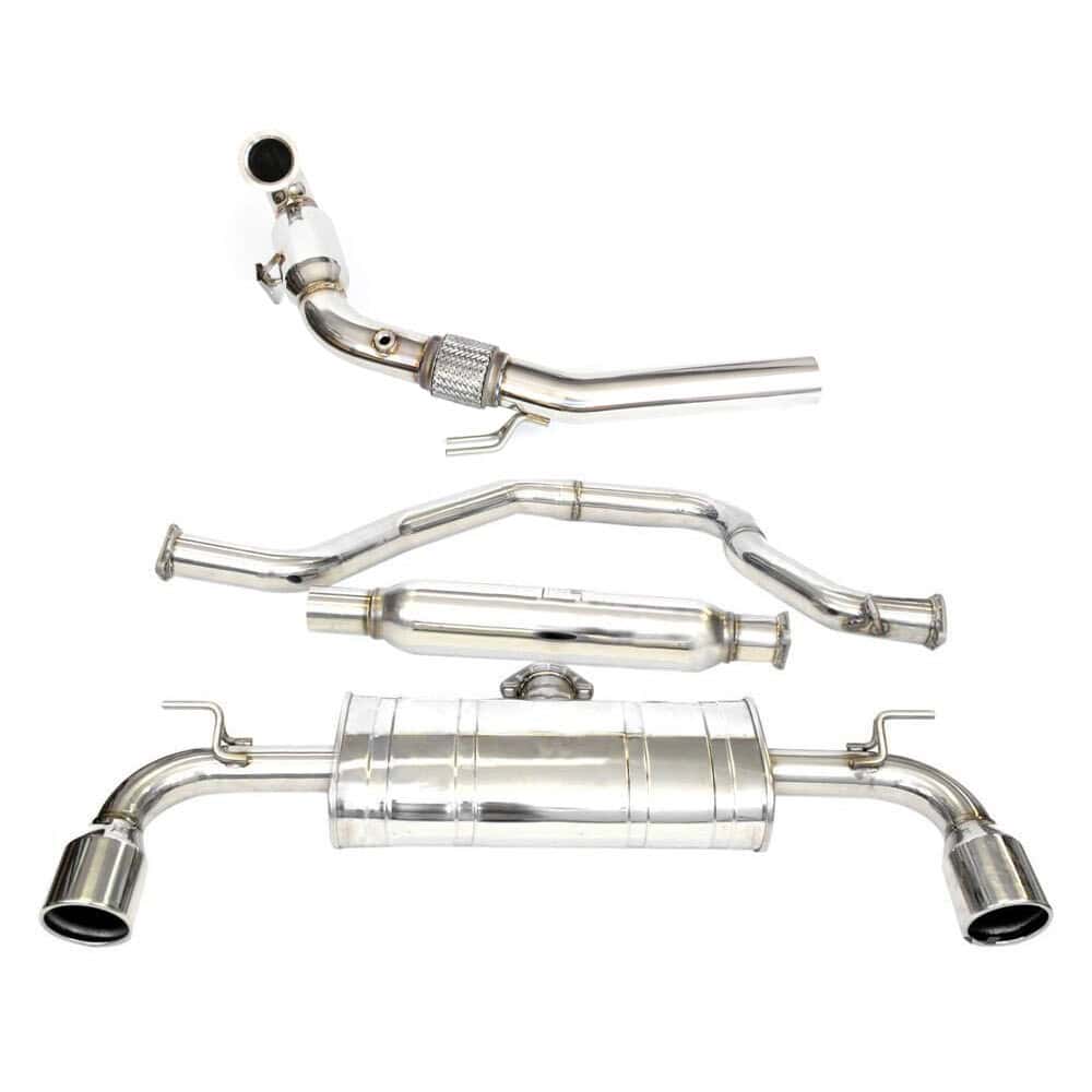 Far more engineering goes in to the design of an exhaust system than many realise. From a performance perspective, there is a fine balance between exhaust back pressure and exhaust gas velocity. Too large a diameter pipe, and low down power and torque is sacrificed (particularly on naturally aspirated cars), too small a diameter or added restrictions and bottle necks in the system, and the engine is unable to push gasses out of the combustion chamber efficiently, reducing power and torque. There are many other technical aspects such as “scavenging effect” which are beyond the scope of this document, but the point is, it’s not as simple as just strap on a drain pipe and gains for days. A “quality” exhaust system maximizes performance gains by design.