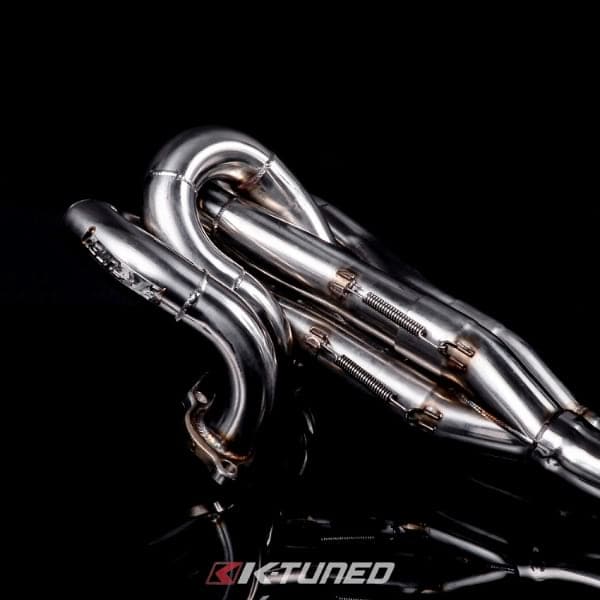 The K-Tuned Ram Header at first glance looks like a pretty crazy design. Essentially it is a long tube header that has been pushed up into the engine bay to provide much better ground clearance. However, there is another purpose to all the turns that you are seeing. They keep the exhaust gases hot and when the exhaust is hot it moves out more quickly. So I bet your next question is, Does it make power ? The answer is yes. This header is definitely the top dog of K-Tuned swap headers. It beat both our K-Tuned 4-2-1 Swap header and even our 4-1Race header during dyno testing. Also when tested side by side against a header with a comparable tube length we came out ahead again.