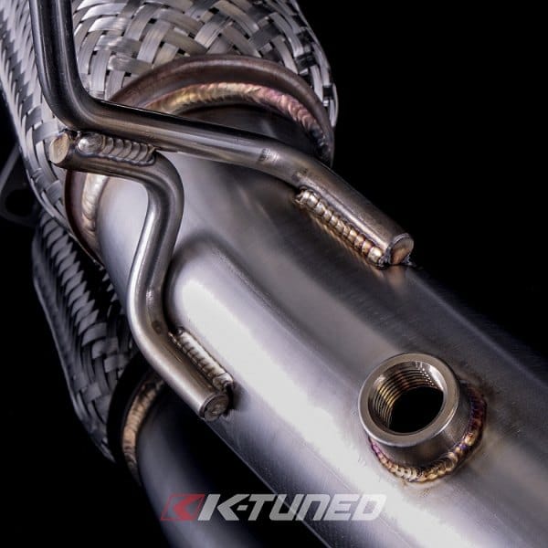The K-Tuned 9th Gen Downpipe completely replaces the factory cat section with a free flowing 3″ downpipe. We started things off with a cast stainless steel housing, designed to offer a smooth transition from the head flange to the exiting 2-bolt exhaust flange. The T304 stainless 3″ diameter pipe section is beautifully tig welded and bolts up to the housing, before heading downward perfectly past the factory subframe and swaybar. Welded into the lower part of the downpipe is a high quality Vibrant Turbo Flex section with interlocking inner liner to absorb the normal engine movement. On the cast housing, we positioned 2 x O2 sensor bungs, one for the primary O2 and a second for an accessory O2 sensor, which we also include a plug for in case it is unused. We include all the hardware needed for installation, including: 1 x O2 plug, 2 x serrated M8 nuts, 1 x M8 bolt and 1 x M8 washer for the housing to head connection. Note that some of the original hardware will still be used to hold the housing in place. Be sure to check out our K-Tuned 9th Gen 3″ Exhaust System, it will mate up perfectly to our downpipe and gains will increase even more with our complete system.
