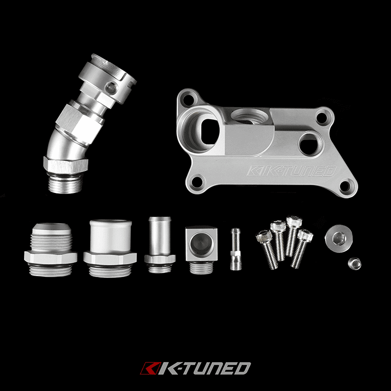 The K-Tuned Upper Coolant Housing will compliment our Swivel Neck Thermostat and our Water Pump Block off Plate. All of these parts allow plenty of options for custom and race engine cooling setups.