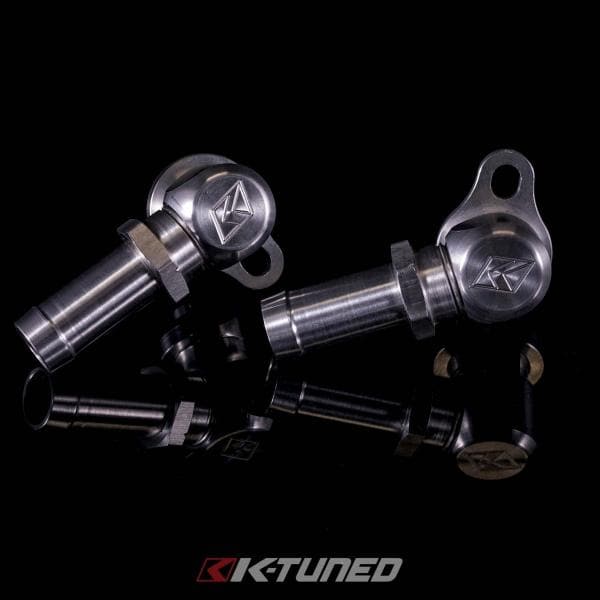 The oil cooler fittings are direct replacement for k-series cars with oil coolers mounted on the back of the head, below the vtec solenoid. The kits come with two fittings, one for on the water pump and the other on the block. Pair these with the K-Tuned silicone hoses for best fit and look. The fittings can be used as a simple way to clean up the engine bay or provide an easy access to coolant for turbo cars.