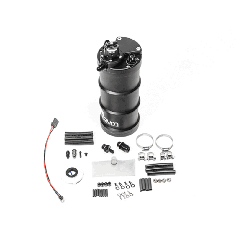 The FSTR-RA houses a single internal fuel pump and has an integrated fuel pressure regulator machined into the top cap. This eliminates the need for an external fuel pressure regulator along with extra fittings and hoses. It simplifies the installation, reduces overall cost, reduces weight, and eliminates potential leak points in the fuel system. Furthermore, this system permits cooler fuel temperatures as the fuel is not returning from the hot engine bay.