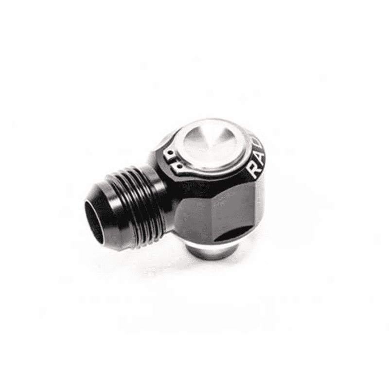Radium Engineering 10AN low profile swivel fittings simply press-in. No drilling or welding required.