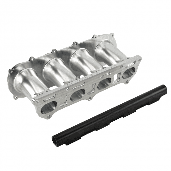 The Skunk2 Ultra-Race Series Billet Intake Manifold Runner for Honda B16A/B17A/B18A/B18C/B20A Engines is the ultimate manifold for high horsepower street and race engines. Though the standard Ultra Manifold already allows for 8 injectors to be mounted using two fuel rails, we listened to the demands of racers for a Skunk2 Ultra Manifold with a top side 8-Injector single rail setup. All Ultra Manifolds feature tapered runners with trumpet profiled entries and plenums that have been designed and optimized using CFD and on the dyno. The short tapered high-volume runners combined with an oversized plenum runners favors maximum top end power over lower end power and response. The best part about this project was that the hard part was completed years ago when we spent countless hours on the dyno developing the original cast Skunk2 Ultra Manifolds. There was no reason to mess with a great and proven design.