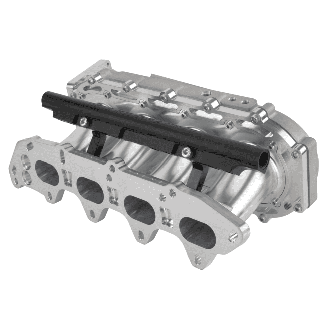 All Ultra Manifolds feature tapered runners with trumpet profiled entries and plenums that have been designed and optimized using CFD and on the dyno. The short tapered high-volume runners combined with a large plenum favors maximum top end power over lower end power and response. Skunk2 Ultra Manifolds also incorporate a modular plenum design where plenum volume can easily be increased using simple spacers, and runners that can easily ported for additional flow and volume.